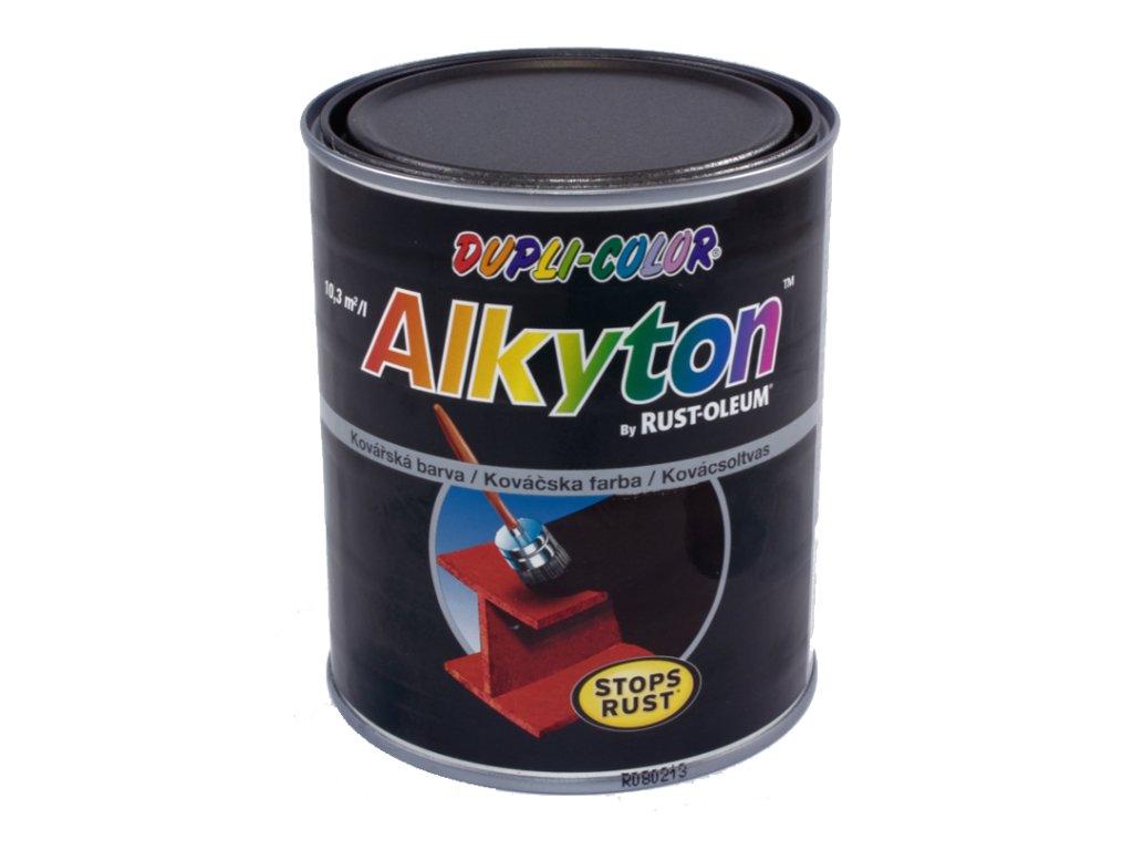 Alkyton Kovářská barva černá je odolná proti působení povětrnostních vlivů. Zasychá i při nízkých teplotách nad +5 °C. Je určena k nátěrům na zrezivělý - ručně očištěný kov, novou ocel nebo na dobře držící základové nátěry v exteriérech a interiérech.Příprava podkladu: