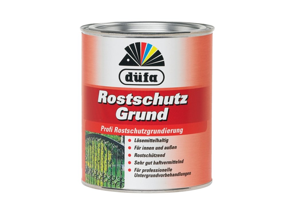 Antikorozní základní bezaromátová barva AZ - Rostschutzgru možno aplikovat i na radiátorech vodního ústředního topení. Materiál na zinko-fosfátové bázi. Na zkorodované podklady. Popis produktu. Možnosti použití: Antikorozní základní nátěr, pro běžné vnější i vnitřní použití, bez obsahu olova - základový antikorozní nátěr pro kovové materiály již napadené korozí. Vlastnosti: - dobrá přilnavost k podkladu - kvalitní podklad pro nátěry syntetických barev, nitrobarev, dvoukomponentních barev, atd. - odolnost proti teplu do 120°C - neobsahuje jedovaté látky - zamezuje dalšímu korodování korozí již napadených povrchů - určen pro vnitřní i vnější použití Barevný odstín: RAL 7001 šedý, RAL 3009 oxidově červený, RAL 9010 bílý Stupeň lesku: mat Hustota: 1,3 g/cm3 Pojivová báze: alkydová pryskyřice Obsah látek: alkydová pryskyřice, titandioxid, anorganické pigmenty, plniva, antikorozní pigmenty, bezaromátová rozpouštědla, aditiva; Zpracování. Vhodný podklad: Poklad důkladně zbavit volných produktů koroze, vyvarovat se “vyleštěných“ míst. Odmastit. Na podkladech, upravených pískováním, provést minimálně dva nátěry. Podklady z čerstvého pozinku upravit předem vhodným reaktivním rostředkem, čpavkovou vodou, nebo nechat přirozenou cestou zoxidovat. Způsob nanášení: štětcem, válečkem nebo nástřikem Postup nanášení: 1 nátěr ředit 10 - 15 % düfa VERDÜNNER AF, následně další 1 - 2 neředěné nátěry dle požadavků na ochranu povrchu. Pro dokonalý účinek je vhodné nanést min. 2 vrstvy se spotřebou max. 10 m2 /L /1 vrstva Reklamace barevného odstínu celoplošně aplikovaného materiálu, bez předchozího reklamování zkušebního nátěru malé plochy, bohužel nelze uznat. Teplota při zpracování: +15 až 20°C, nezpracovávat na přímém slunci. Doba schnutí proti prachu: cca 4 hod. při +20°C a 60% rel. vlhkosti vzduchu*: přetíratelná po: cca 12 hod. *Při nižších teplotách nebo vyšší vlhkosti vzduchu se doba schnutí prodlužuje. Při nestandardním použití (např. kombinace vodouředitelných a rozpouštědlových materiálů) je nutná podstatně delší doba prosychání před následným nátěrem (řádově týdny). Pro tyto aplikace doporučujeme provést zkušební nátěr nebo využít bezplatný poradenský servis výrobce. Vydatnost*: 10 m2/L v jedné vrstvě *Spotřeba je závislá na vlastnostech podkladu a způsobu nanášení. Pro přesnou kalkulaci doporučujeme provést zkušební nátěr. Ředění: Materiál je dodáván ve stavu k přímému použití. Pro standardní zpracování neředit. Čištění nástrojů: pracovní nářadí umýt v düfa Terpentin-Ersatz nebo düfa Pinselreiniger Velikosti balení: 750 ml – 2,5 LDoplňkové parametry