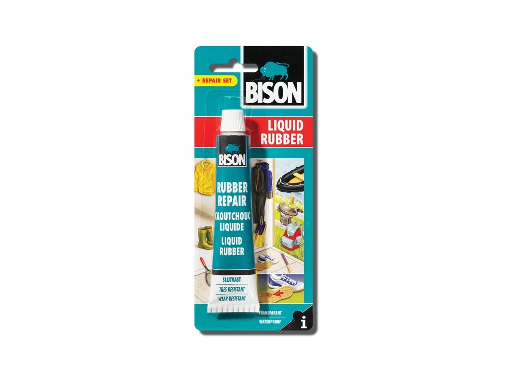 Bison Liquid Rubber Je pevná, vodovzdorná (i proti mořské vodě), pružná, má dlouhou životnost a vyplňuje spáry. Je odolná proti chemikáliím, vysokým teplotám a povětrnostním vlivům. Má výbornou tepelnou odolnost od -40°C do +120°C. Lepený spoj zůstává elastický a vyrovnává vnitřní napětí. Rozsah použití: Lepí, utěsňuje, vyplňuje pryž, kůži, textil, neopren, plasty, dřevo, kovy a keramiku. Je vhodná zejména k opravám spár a děr ve sportovní obuvi, podrážkách, holínkách, rukavicích, nafukovacích výrobcích, člunech, stanech, neoprenových oblecích, pláštěnkách atd. Není určena pro PP, PE a teflon. Návod k použití: Zdrsněte materiál. Povrchy musí být čisté, suché, bez prachu a mastnoty. Naneste vrstvu min. 2 mm a pastu rozetřete. Opravy obuvi/nafukovacích člunů: naneste na povrch tenkou vrstvu (max. 1 mm) a špachtlí řádně vtlačte polyesterovou záplatu (min. šířka 2,5 cm) do pasty. Rozetřete vrstvu pasty na polyesterovou záplatu i okolní plochu. Doba vytvrzování: 48 hodin. Mokré skvrny ihned odstraňte acetonem. Důležité: Nepoužívejte při teplotě nižší než +5°C. Po použití řádně uzavřete obal a uložte ho na suché, chladné místo chráněné před mrazem. Minimální skladovatelnost je 18 měsíců. Upozornění: Uchovávejte mimo dosah dětí. Při nadýchání zabezpečte dostatečný přísun vzduchu. Při zasažaní očí okamžitě důkladně vypláchněte vodou. Při požití nevyvolávejte zvracení a okamžitě vyhledejte lékařskou pomoc.Doplňkové parametry