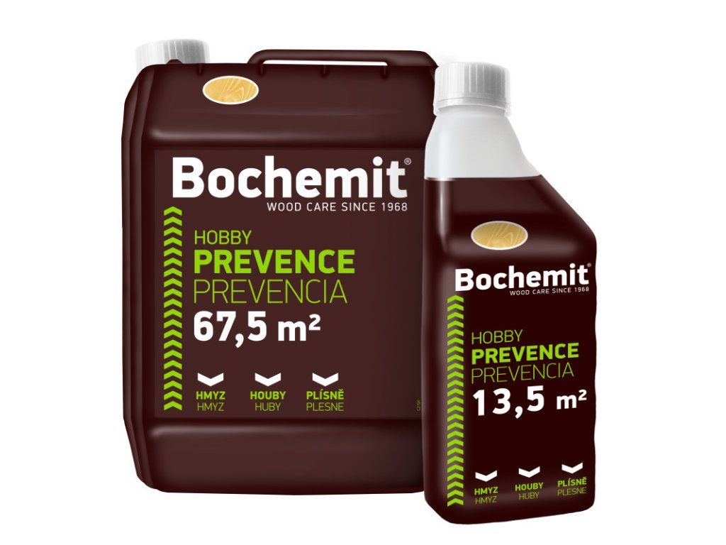 Bochemit Hobby poskytuje dlouhodobou preventivní ochranu, je vodou ředitelný, určený pro interiéry i exteriéry.Pro povrchovou impregnaci dřeva, dřevěných stavebních konstrukcí a dalšího stavebního řeziva při stavbách a rekonstrukcích v interiérech (třídy použití 1 a 2 dle ČSN EN 335) i v exteriérech (třída použití 3 dle ČSN EN 335) staveb proti dřevokazným houbám Basidiomycetes,