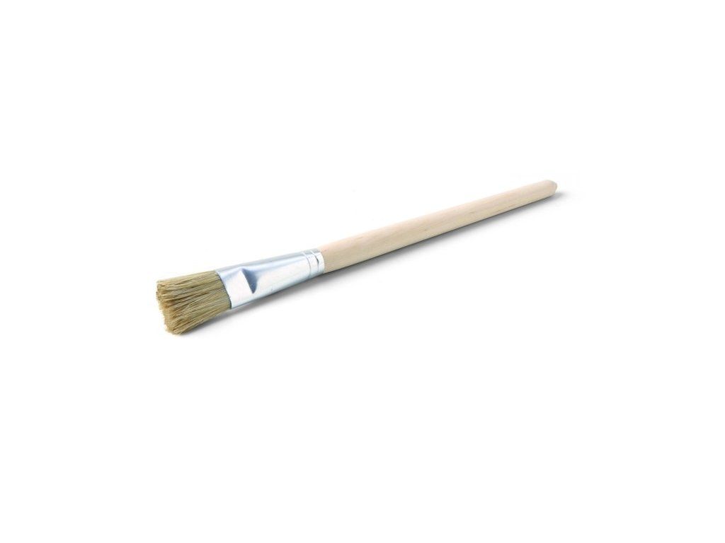 Mako Štětec na emailysvětlá čínska štětina, zastrižena do obloučku, uchycení z bíleho plechu, krátka dřevěná násada.