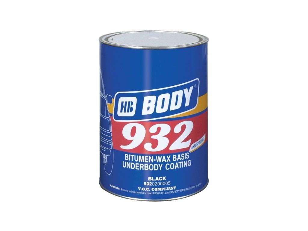 Body 932 má velmi dobrou přilnavost na čistém i na asfaltovém povrchu. Může se ředit ředidlem BODY 767 ECO THINN v množství 20-30%. Nanáší se štětcem nebo speciální stříkací pistolí (Body UBS) tlakem 5-6 barů. Nedá se přelakovat, protože obsahuje vosk.Body 932 Černý tixotropní materiál n na bázi asfaltu , kaučuku a vosku. Používá se na spo spodní části automobilů, které chrání proti korozi, hluku a nárazům kammínků. Má velmi dobrou přilnavost a elasticitu. Zaruučuje velmi dobrou ochranu proti vlhkosti a korozi. Zachovává si e elasticitu při teplotách od –20°C do +60°C. Přilnav vost je velmi dobrá jak na čistých plochách, tak i na asfaltových n nátěrech. Může se ředit max 20-30% tech. benzíne em. Nanáší se štětcem nebo speciální pistolí na spodní části aut (tlaak 3-5 bar). Schne rychle, není jej možno lakovat, , protože obsahuje asfalt a vosk.