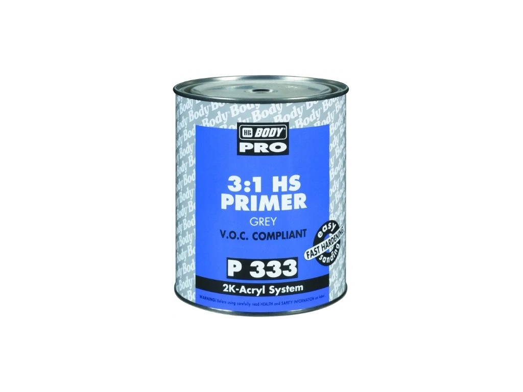 Body pro P333 je vhodný na staré nátěry nebo na nové nebroušené originální náhradní díly (O.E.M. / E-COAT). Plnič můžeme aplikovat dvěma způsoby, a to standartně (po zaschnutí brousit brusným papírem) nebo přímo „mokré do mokrého“. Díky jeho vysoké plnící schopnosti a tixotropnosti ho lze nanášet v silnějších vrstvách. Rychlé schnutí a výborné vyrovnávací schopnosti tohoto materiálu zaručují jeho ekonomické nanášení a rychlé broušení. Tuží se v poměru 3:1 tužidlem BODY HARDENER H725. Jednou z jeho největších výhod je, že je připravený k broušení už po 2 hodinách sušení na vzduchu při 23oC. Použitím urychlovače HB BODY PRO A715 TURBO AX se doba schnutí výrazně zkracuje. Balení : 1lt, 3lt Odstín : bílý, černý, šedýDoplňkové parametry