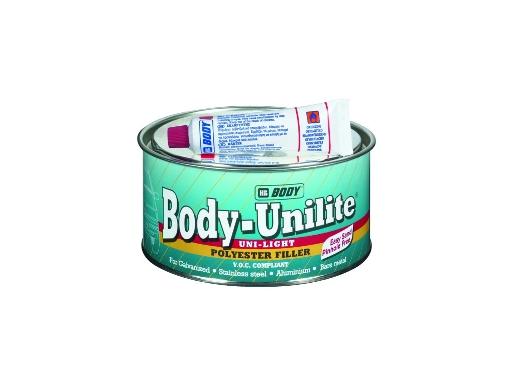 Body unilite 209 je dvousložkový jemný polyesterový tmel se širokým použitím. Vhodný na opravy všech kovových povrchů, včetně hliníku, pozinku, nerezové oceli a chromu, ale i dřevěných a polyesterových povrchů.Lehce se brousí brusným papírem P100-180 a vytváří hladký povrch.