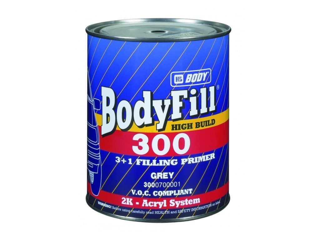 Bodyfill 300 se může se nanášet i na starý přebroušený lak, na ABS a na tvrdé povrchy z umělé hmoty PVC. Tuží se v poměru 3:1 tužidlem BODY HARDENER NORMAL 720 / FAST 722 případně BODY H725. Ředí se 10-15% ředidlem ACRYL NORMAL 740 / SLOW 741. Aplikuje se stříkací pistolí s průměrem trysky 1,5-1,8 mm. Schne 20-30 min. při teplotě 60oC nebo 3 hodiny při teplotě vzduchu 23oC. Použitím urychlovače HB BODY PRO A715 TURBO AX se doba schnutí výrazně zkracuje. Balení : 1lt, 3lt, 15lt Odstín : bílý, černý, šedý, červenýDoplňkové parametry
