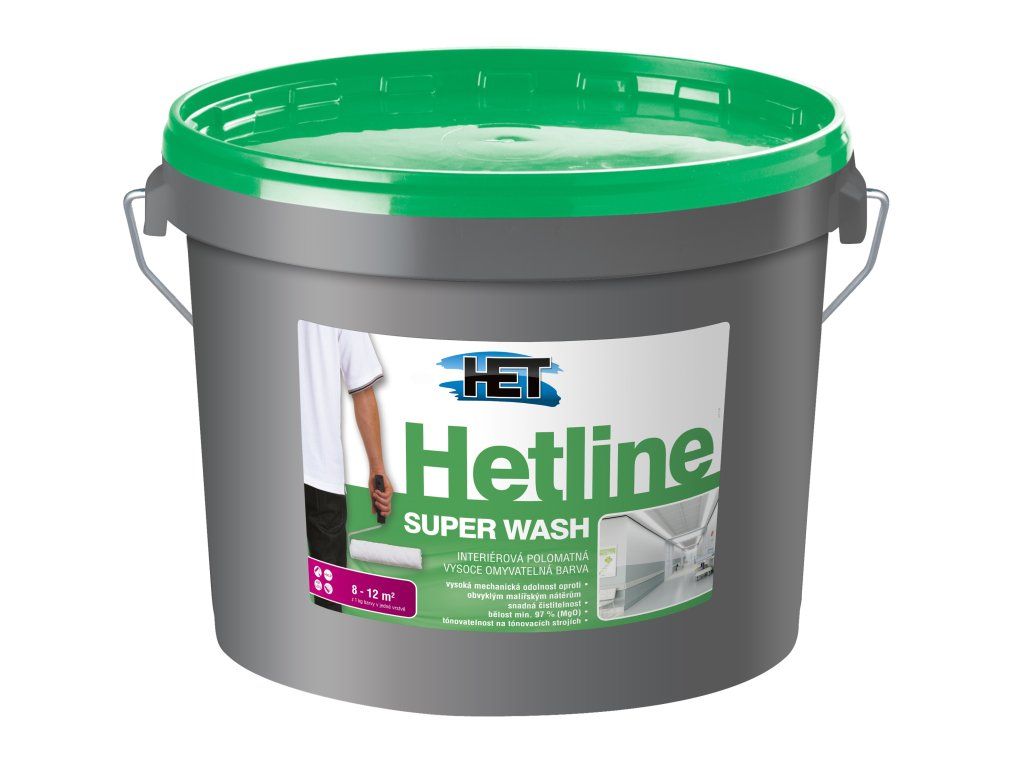 Het Hetline Super Washk vnitřním nátěrům stěn a stropů, vápenných, vápenocementových, sádrovápenných a sádrových omítek, sádrokartonových, sádrovláknitých, dřevovláknitých a dřevotřískových desek, omítek s akrylátovým pojivem, betonových panelů a monolitů, papírových tapet k tomu určených, tapet ze skelných vláken, příp. k nátěrům dřeva a k nátěrům kovových podkladů opatřených základním antikorozním nátěrem. Vhodný k aplikaci na podklady s