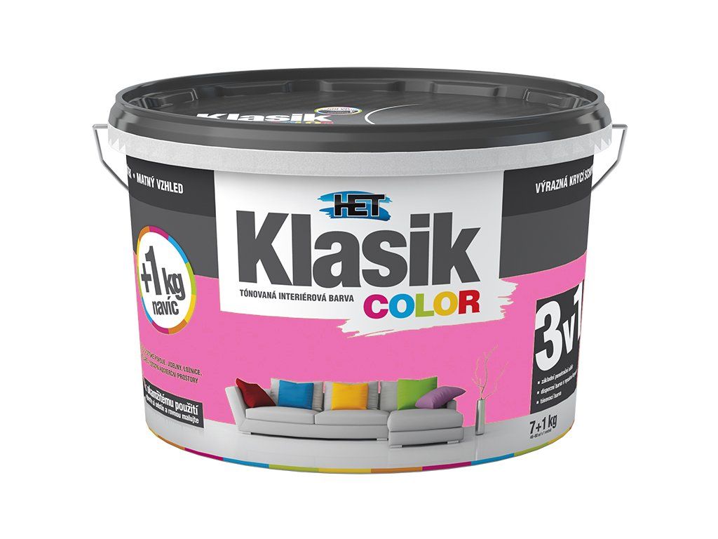 Het Klasik COLORje kavlitní tónovaná disperzní barva, vhodná pro obývací a komerční prostory, dětské pokoje, jídelny, chodby, kanceláře, prodejní prostory.