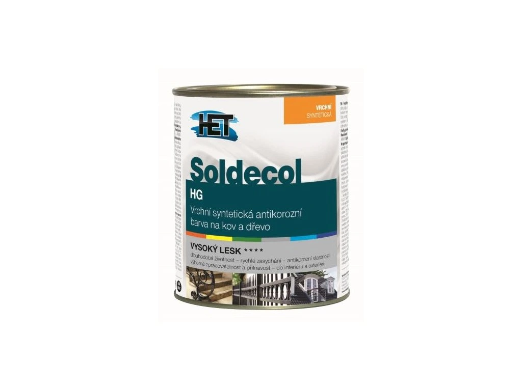 Soldecol HG Vrchní syntetická vysoce lesklá antikorozní na kov a dřevo - pro nátěry kovových a dřevěných podkladů, např. brány, ploty, sloupy, klempířské prvky, okna, dveře apod.