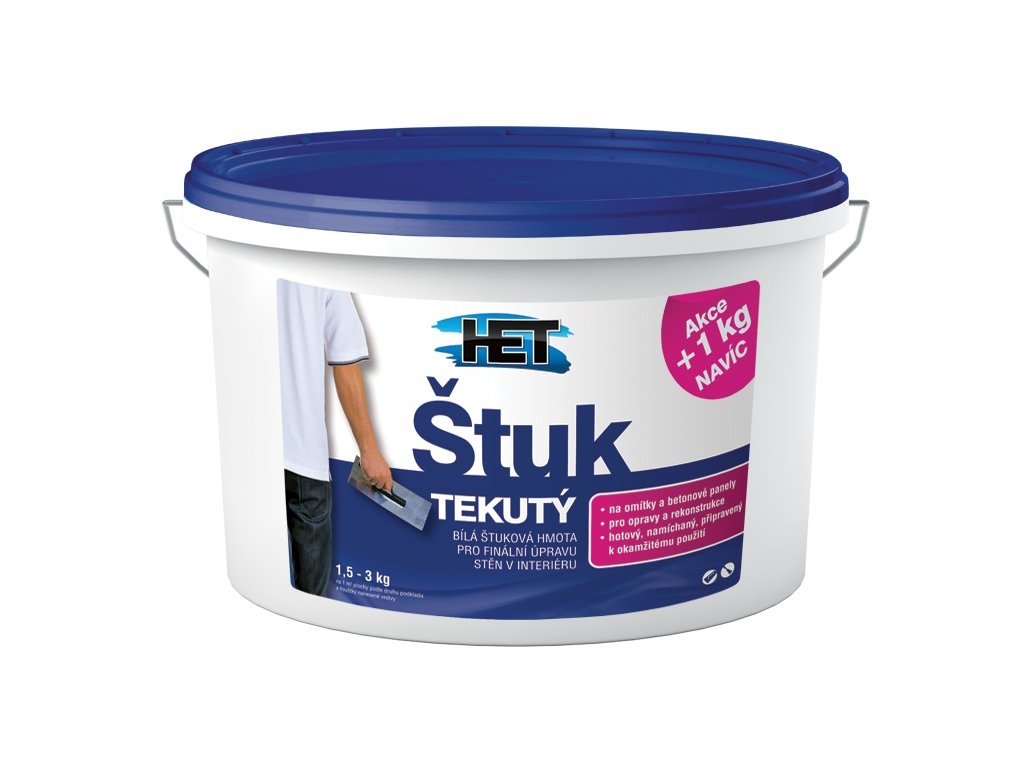 Het Štuk tekutý bílá štuková hmota pro finální úpravu stěn v interiéru a exteriéru - pro konečné úpravy vnitřních zdí. K okamžitému použití jako stěrková hmota na jádrové omítky nebo na betonové panely. Je vhodný pro rekonstrukce panelových bytů...