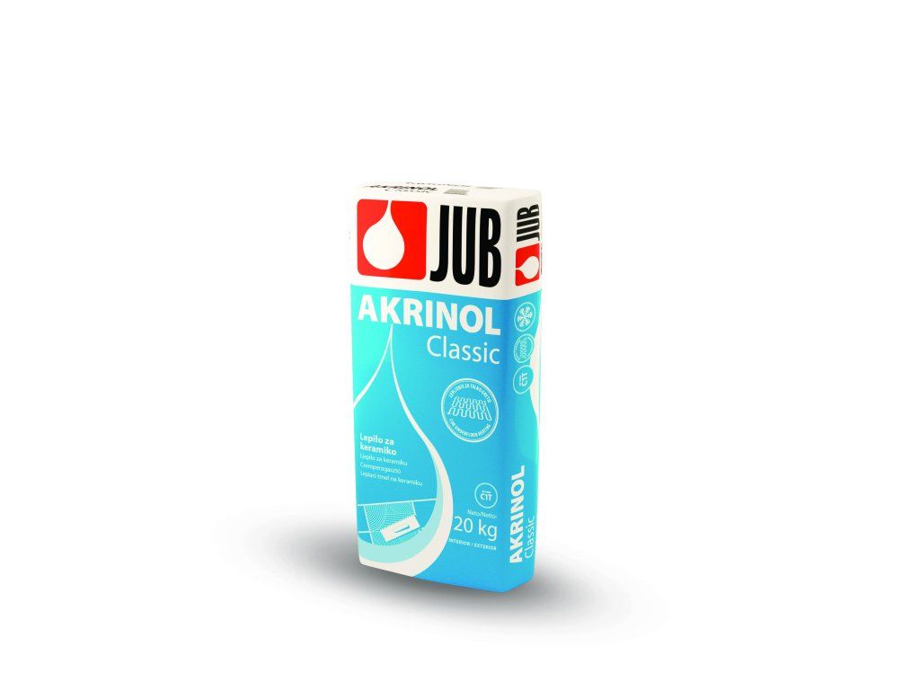 Akrinolje víceúčelové stavební lepidlo pro vnitřní a vnější použití, vyrobené na základě cementu. Je určeno k lepení středně a vysoce nasákavých keramických dlažeb a obkladů, klinkeru, skleněných a jiných mozaik na neproblematické druhy zdiva (hladké vápenné, vápenocementové a cementové omítky) i podlah (beton, cementové mazaniny a potěry).