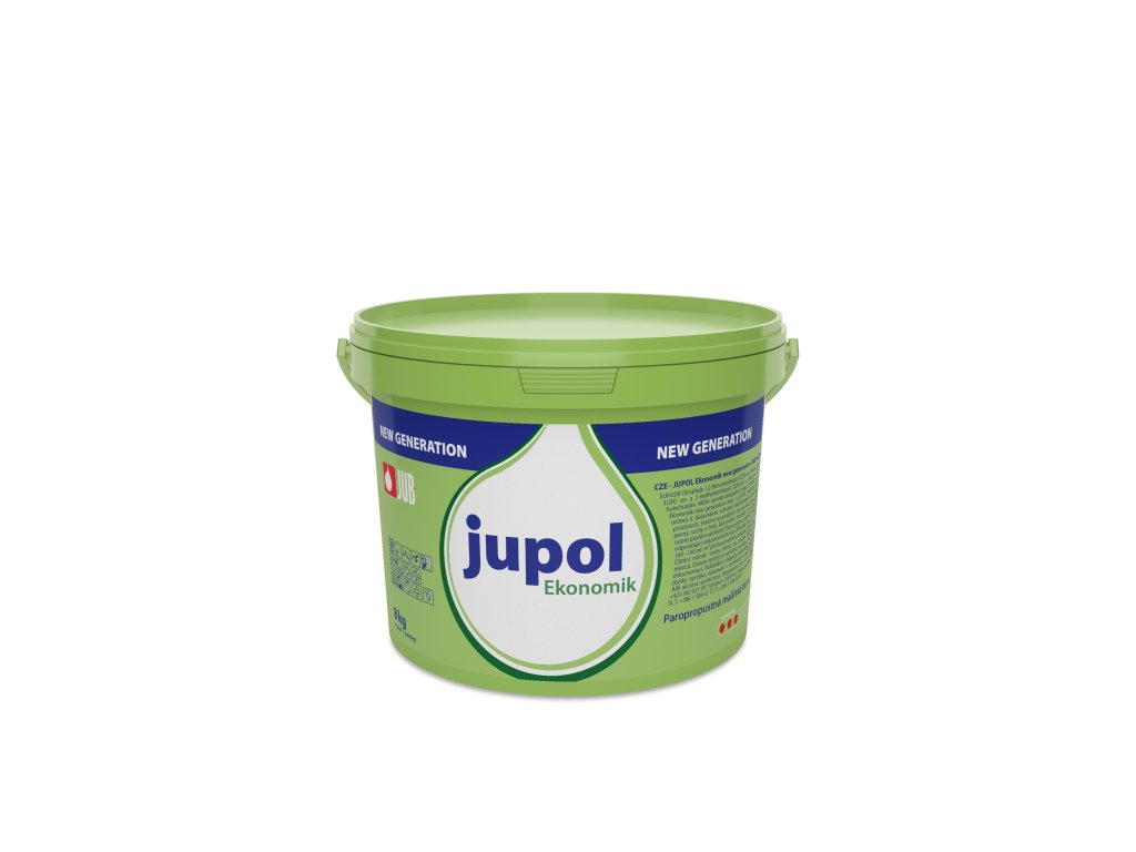 Jupol Ekonomikje bílá vnitřní malířská barva, vyrobená na základě vodní disperze polymerních pojiv. Je určena