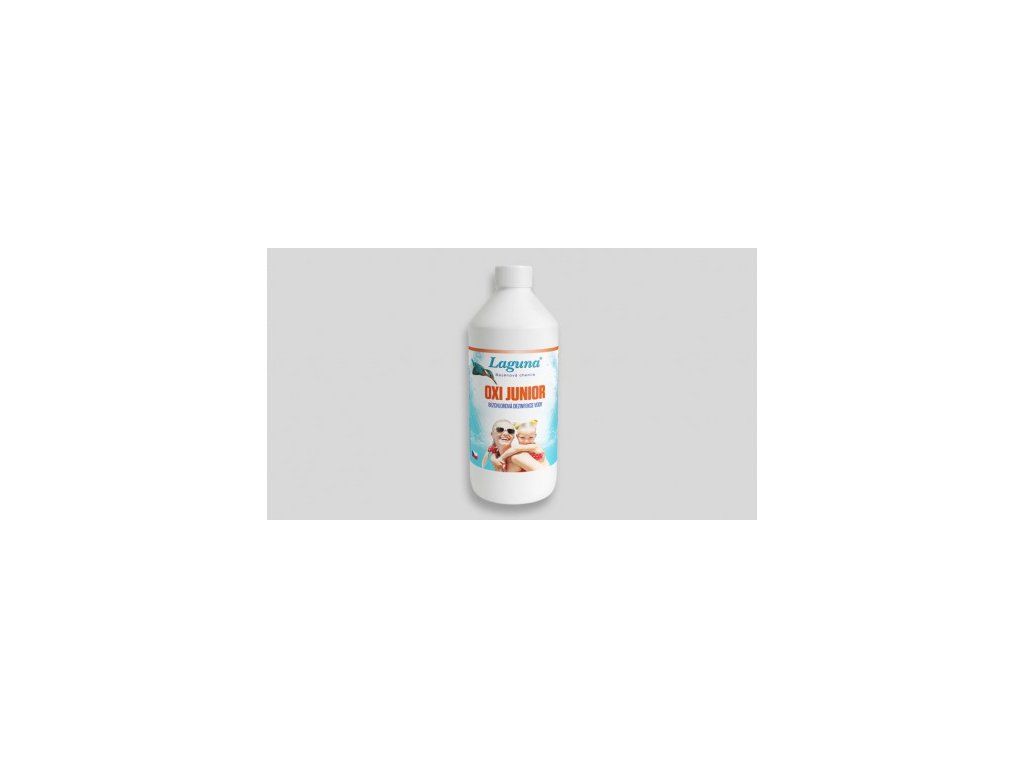 Laguna Oxi junior Přípravek Laguna OXI junior je kapalný přípravek vhodný pro všechny bazény (i dětské) s filtrací i bez filtrace s výrazným účinkem proti bakteriím, řasám, houbám, plísním, mykobakteriím a virům. Jeho dezinfekční funkce je založena na bázi synergického účinku peroxidu vodíku a stopového množství stříbra. Ošetřená voda nepáchne po chloru, nedráždí oči, sliznice a kůži, což jsou značné výhody proti chlorovým přípravkům. Návod k použití: Přípravek se přidává přímo do bazénu 1–2x týdně. Ošetření se provádí bez přítomnosti osob v bazénu, koupat se je možno ihned po krátkém promíchání bazénové vody. Ideální obsah aktivního kyslíku je v rozmezí 5–10 mg/l, měříme ho testerem 1x týdně, při velkém provozu a v období horka častěji. Dávkování: 75 ml/1 m3 (1000 l) vody, vpraví se cca 8 mg peroxidu vodíku, tj. cca 4 mg aktivního kyslíku/1 litr vody. „Používejte biocidy bezpečným způsobem. Před použitím si vždy přečtěte označení a informace o přípravku“ Spotřeba: cca 75 ml/1m3 Balení: 0,5; 1 lDoplňkové parametry