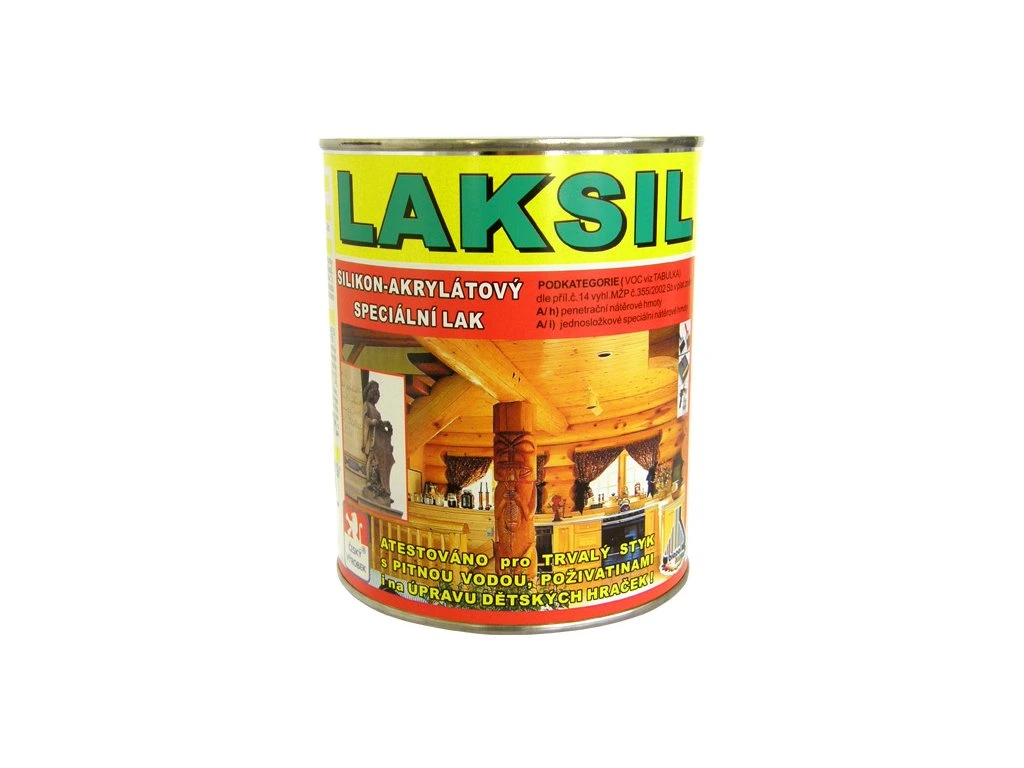 Laksil je silikon-akrylátový lak rozpouštědlový se používá k ochraně povrchů neželezných kovů (Cu.Zn.mosaz) i k penetraci a zpevňování porézních podkladů (dřevo, beton, pískovec, zdivo, eternit). Lak je určen k ochraně materiálů před působením povětrnostních vlivů, vlhkosti, vody i slunečního svitu. VYDATNOST: 4-6m/kg na 1 vrstvu. APLIKACE: Štětec, váleček. ŘEDĚNÍ: Xylen, S 6005. Lak je optimálně naředěn z výroby. Do optimálního zpracování je možné lak přiředit max 5% ředidla. Pro napoušění savých podkladů povoleno přidání 25% ředidla S 6005.Doplňkové parametry