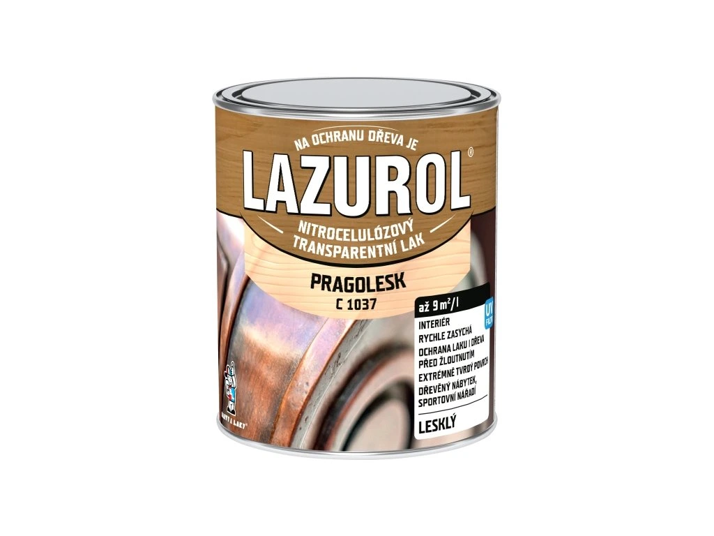 Lazurol Pragolesk C1037Není vhodný pro nátěry vystavené přímému dlouhodobému působení povětrnostních vlivů. Obsahuje látky pohlcující UV záření, nátěr proto nežloutne a je omezeno i žloutnutí dřeva pod nátěrem.