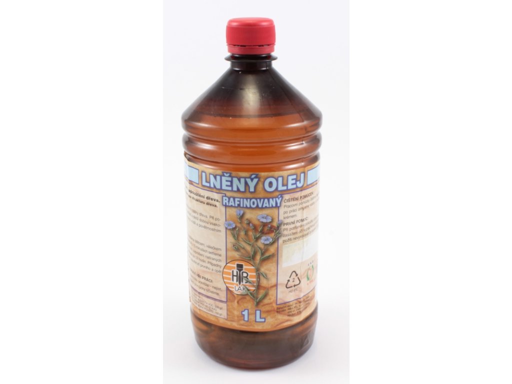 Lněný olej - napouštěcí prostředek. Olejem lze napouštět dřevo měkké i tvrdé – zůstává přírodní vzhled. Charakteristika výrobku: Lněný olej je přírodní produkt pro napouštění dřeva. Zároveň zvýrazňuje přirozenou strukturu dřeva. Použití: Olej je vhodný pro vnitřní i venkovní nátěry předmětů, hlavně z měkkého dřeva. Při použití na tvrdé dřevo je nutno počítat s delší dobou vsakování. Vznikne ochranný film odolný vodě a mechanickému otěru. Pracovní postup: Dřevo musí být čisté, zbavené mastnoty a suché. Olej před použitím protřepeme a potom nanášíme štětcem, válečkem nebo hadrem ve velmi tenké vrstvě. Po 15 minutách setřeme nevsáklý olej hadrem, zabráníme tím lepivosti a zaprášení natíraných ploch. K úplnému zaschnutí dojde asi za 12 hodin. Případný druhý nátěr aplikujeme po úplném zaschnutí prvního a opět ve velmi tenké vrstvě maximálně 15 mikrometrů. Balení: 0,5 L, 1 L, 5 L, 10 L případně do jiných dohodnutých obalů.Doplňkové parametry