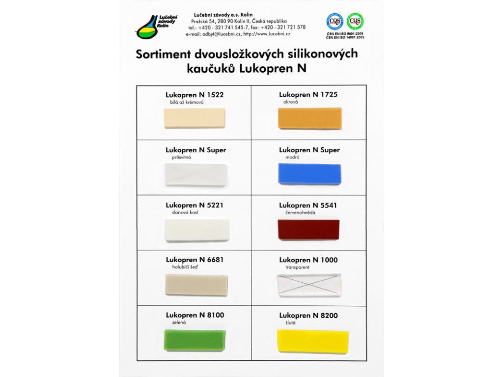 Lukopren N 1725 Dvousložkový silikonový kaučuk s omezenou stékavostí. Je určen pro snímání reliéfů ze šikmých a svislých stěn, využívá se při výrobě velkých forem (sochy). Nanáší se stěrkováním, vhodný pro restaurátory.