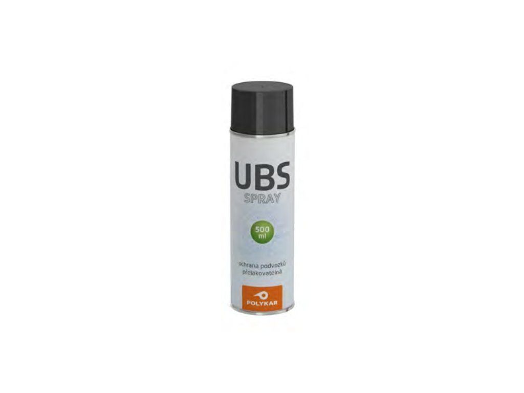 PolyKar UBS sprej zabezpečuje izolační a antikorozní ochranu na bázi syntetických pryskyřic na prahy a podvozky vozidel. Přelakovatelný prostředek na ochranu podvozků a prahů aut vyroben na bázi syntetických pryskyřic. Tvoří silnou elastickou vrstvu chránící proti abrazivnímu působení posypových materiálů, účinkům koroze, benzínu, vody, olejů a soli. Má vlastnosti ochranné a tlumící. Balení: 1,0 l; 1,5 l – kartuš na pistoli 500ml - sprej Barva: bílá, šedá, černáDoplňkové parametry