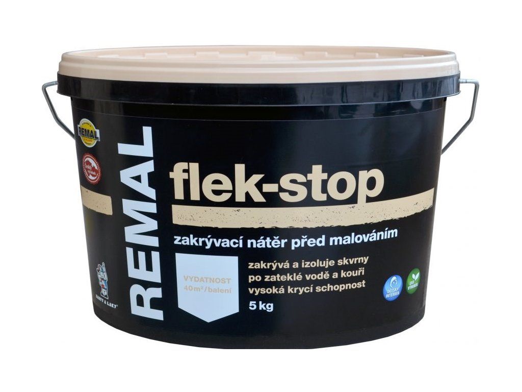 Vhodné podklady – beton, omítky, dřevo, sádrokarton. Podklad musí být pevný, vyzrálý, zbavený prachu a nečistot. Nesoudržné, sprašující se a příliš savé podklady se musí předem napenetrovat vhodným penetračním prostředkem (Remal penetrační nátěr, Barlet penetrační nátěr), popř. oškrábat + napenetrovat (zejména staré klížené nátěry ve větších vrstvách). Izolační nátěr FLEK-STOP doporučujeme přetřít malířskou barvou z řady REMAL. Všechna znečištěná místa a nářadí omyjte vodou. Zaschlá barva se špatně odstraňuje.Vydatnost: 8 m2/1 kg