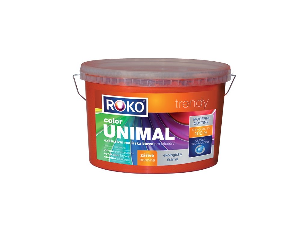 Rokounimal Color je tradiční levný a již barevně pigmentovaný malířský nátěr s dobrou krycí schopností. Je vyráběn a dodáván již napigmentovaný, v několika barevných odstínech.
