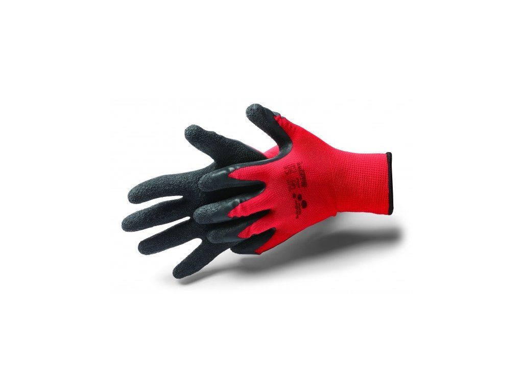 Víceúčelové rukavice s latexovou úpravou, zvrásněný povrch. Tyto rukavice mají dobrou přiléhavost, vynikající citlivost prstů a dobrou odolnost proti olejům a mastnotě.