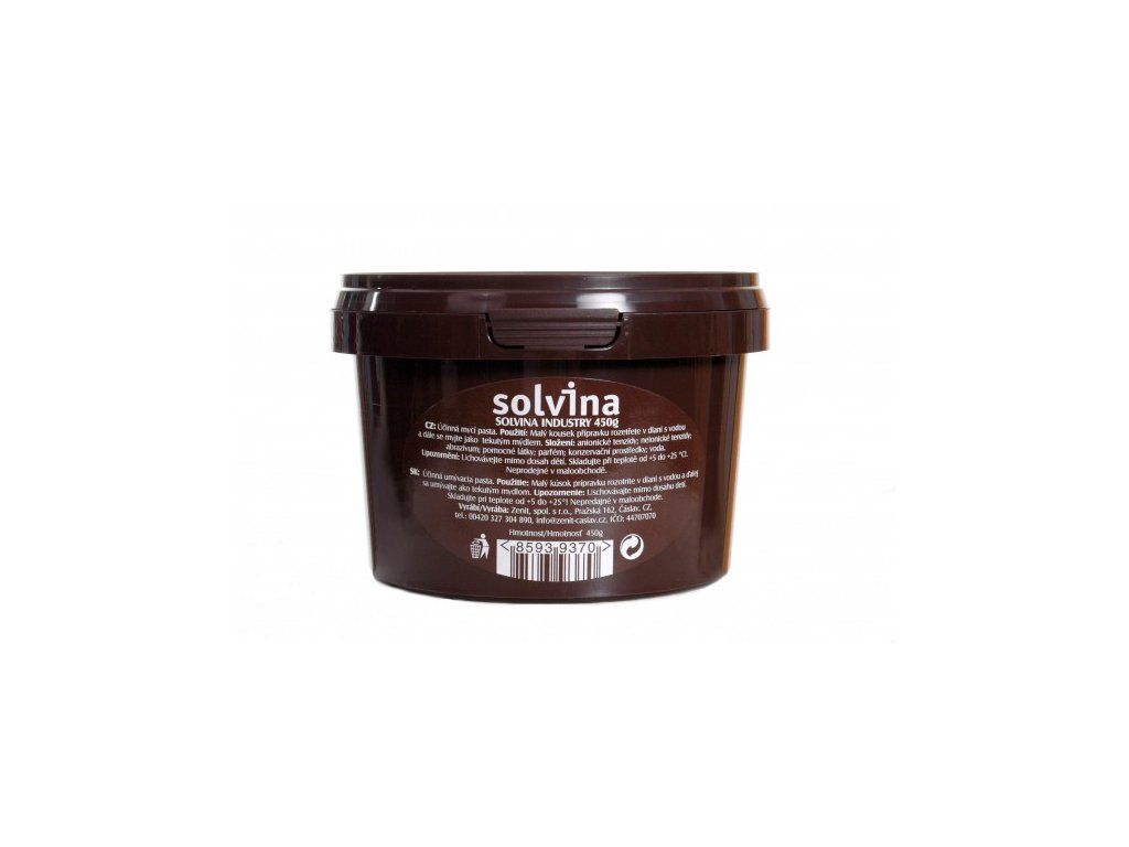 Solvina je mycí pasta na ruce, obsahující látky, které příznivě působí na pokožku rukou a činí ji hebkou a svěží. Lehce a snadno odstraňuje nečistoty z pokožky.